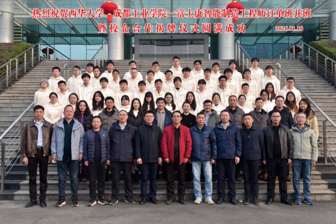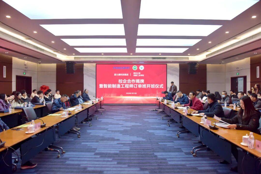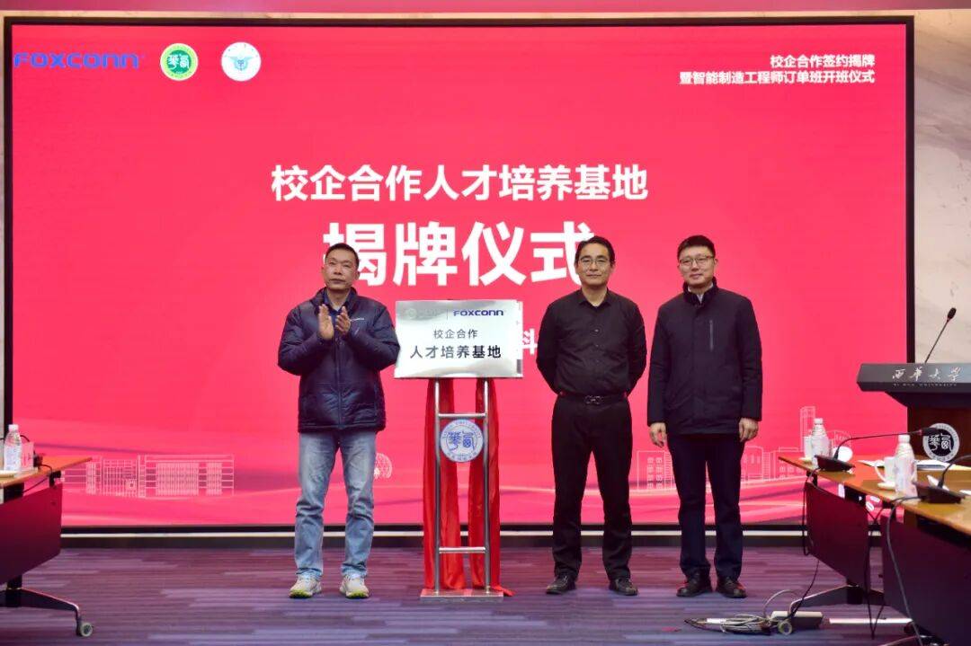 西华大学、成都工业学院取富士康科技集团校企合做揭牌暨“智能制制工程师订单班”开班典礼正在郫都校区举行。西华大学党委常委、副校长费凌,成都工业学院党委常委、副校长张勤怯,富士康科技集团成都科技园人力资本处处长张荣等出席勾当。48名订单班同窗加入开班典礼。