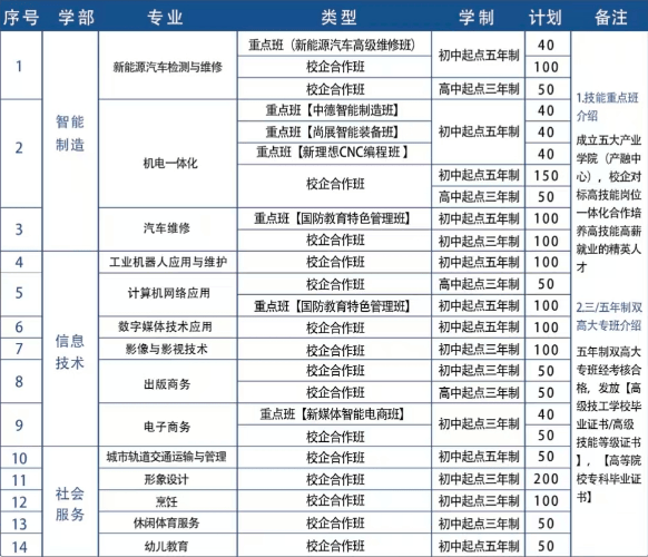 身体健康,无传染性疾病;烹调专业需无食物行业禁忌疾病(如乙肝),休闲体育办事专业需体能达标。新能源汽车检测取维修:涵盖电池、电机、电控系统检测取,就业标的目的为新能源汽车4S店维修技师、制制厂拆卸岗等,月薪6000-10000元。机电一体化手艺:进修PLC编程、数控加工、工业机械人根本,就业标的目的为机械制制厂机电技师、从动化出产线元。计较机收集使用:聚焦收集组建、收集平安、办事器办理,就业标的目的为企业收集运维岗、IT公司安防岗等,月薪4000-8000元。数字手艺使用:涵盖三维动画、视频编纂、摄影后期,就业标的目的为告白公司设想岗、传媒公司视频制做岗等,月薪5000-10000元。抽象设想:进修化妆制型、美发手艺、美甲美睫,就业标的目的为影楼化妆师、美容院美容师等,月薪4000-8000元,可自从创业。烹调:涵盖西餐烹调(徽菜、川菜)、西点制做,就业标的目的为星级酒店厨师、连锁餐饮企业养分师等,月薪4500-9000元。
